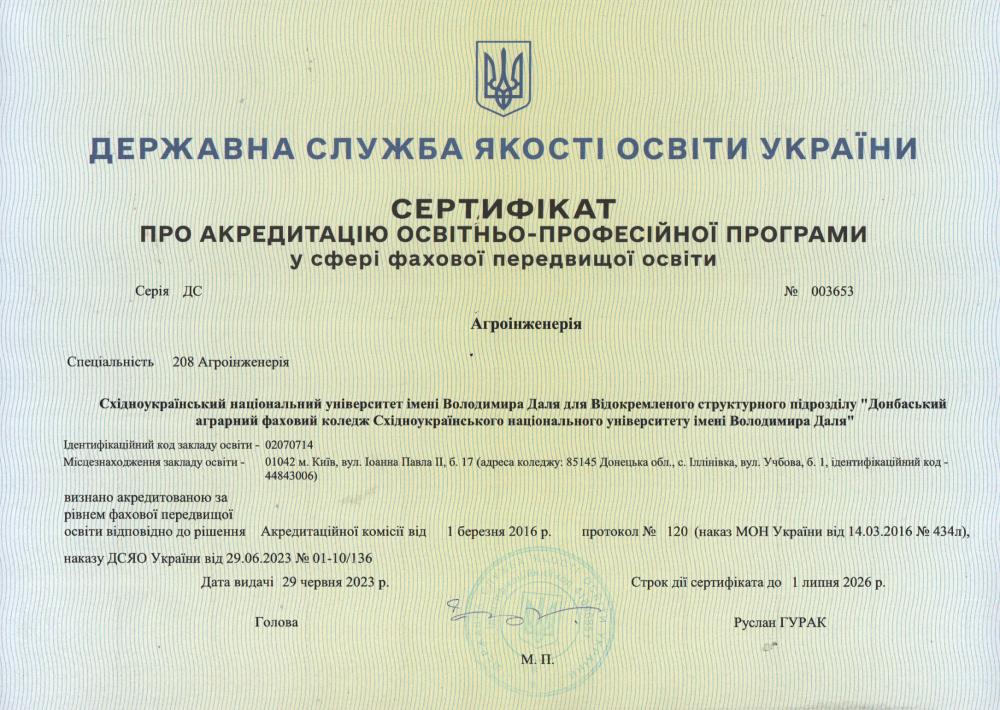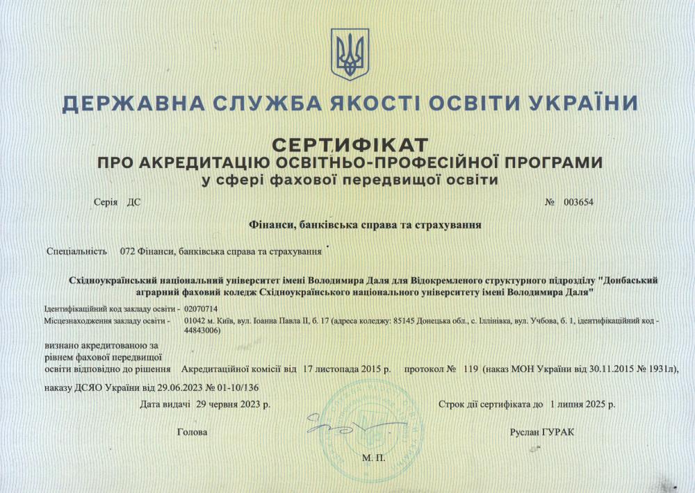 Сертифікати акредитації освітніх програм (спеціальностей)