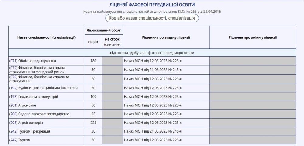 Відомості про право здійснення освітньої діяльності (ліцензія)