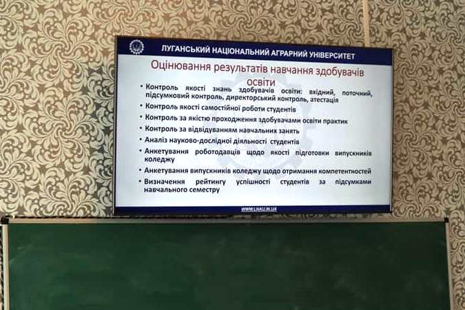 З доповідями на тему «Створення внутрішньої системи забезпечення якості освіти у закладах фахової передвищої освіти» виступили: Олена Воронцова, в.о. директора відокремленого структурного підрозділу «Донбаський аграрний фаховий коледж Луганського національного аграрного університету», Геннадій Гонтар, заступник директора з навчальної роботи відокремленого структурного підрозділу «Донецький фаховий коледж Луганського національного аграрного університету» та Олена Рогозян, заступник директора з навчальної роботи, відокремленого структурного підрозділу «Старобільський фаховий коледж Луганського національного аграрного університету».