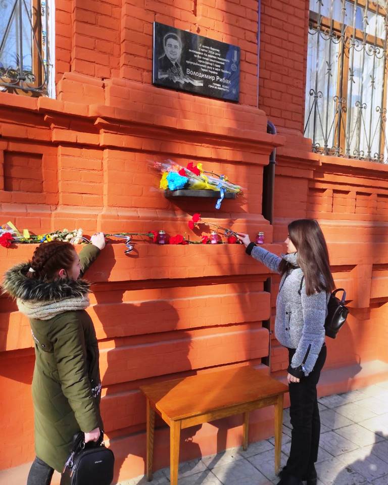 У ці пам’ятні дні студенти ВСП «Донбаський аграрний фаховий коледж ЛНАУ» долучилися до вшанування пам’яті героїв, що боронили честь, волю України покладанням квітів до меморіальної дошки Героя України Володимира Рибака.