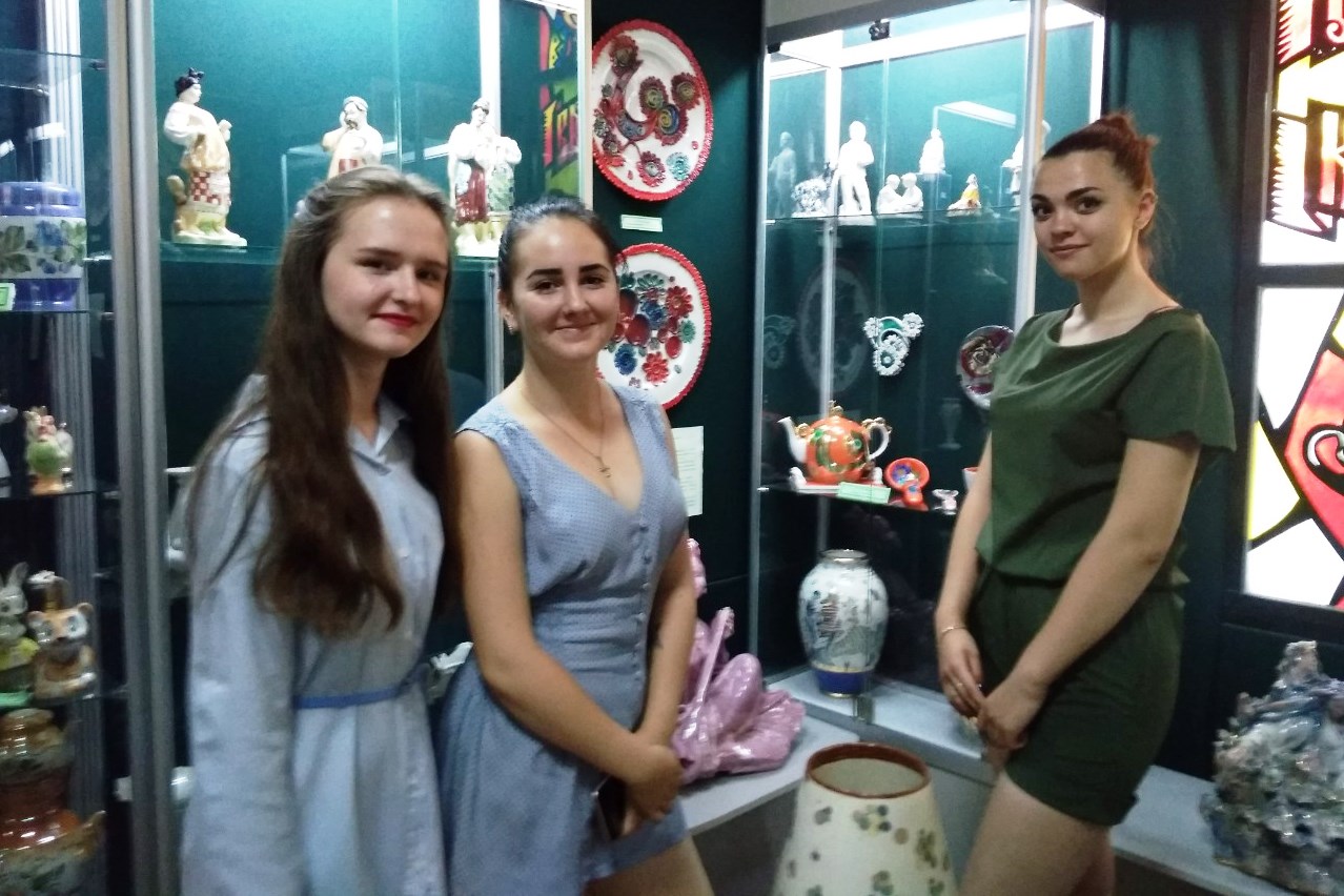 Цікавою для студентів стала виставкова зала в якій розміщені роботи нашої землячки Максимченко Наталії Олексіївни, яка працює в стилі художньої кераміки. Студентів вразили її роботи, кожен знайшов для себе щось цікаве
