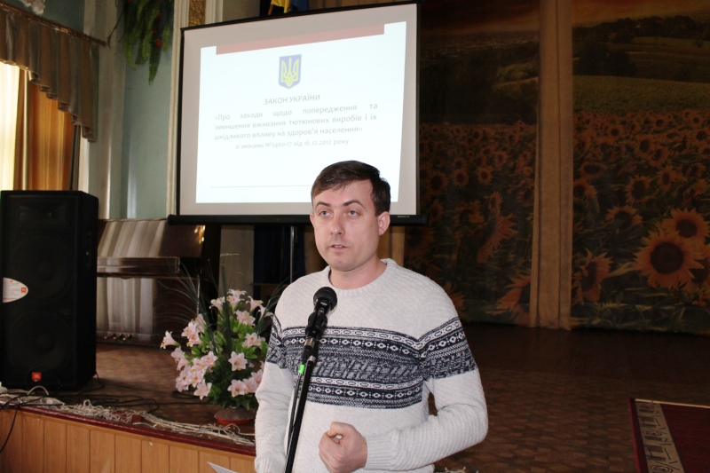 Станіслав Миколайович, цікаво, а головне – зрозуміло і доступно ознайомив студентів з основними складовими Закону про заборону паління в громадських місцях, відповідальність за порушення цього закону, навів цікаву статистику про шкідливість паління. Алла Миколаївна Проскуніна ознайомила присутніх із наказом про заборону куріння на території технікуму, в тому числі, про відповідальність студентів і викладачів за порушення даного наказу