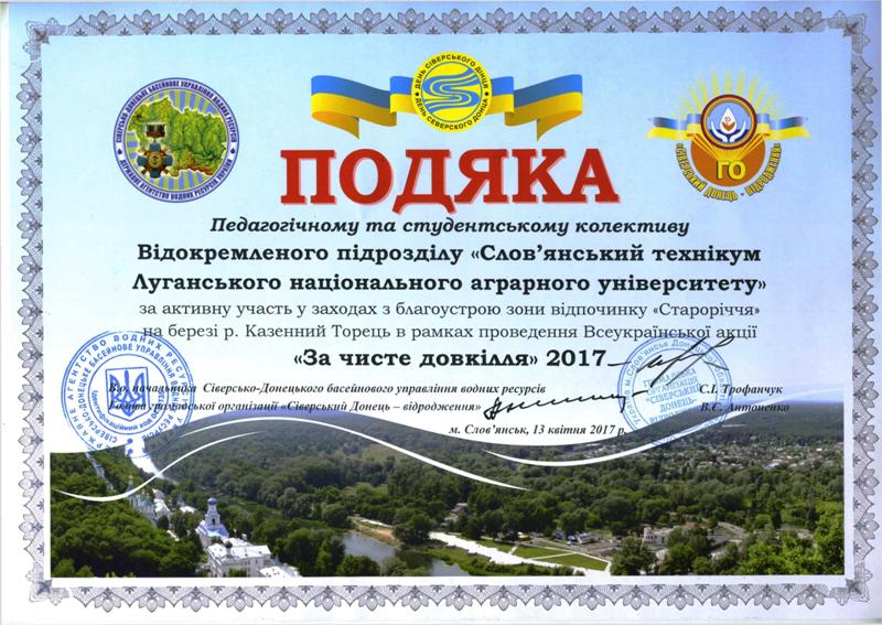 Усіх добровільних помічників було відзначено Подяками за участь у толоці на березі річки Казенний Торець в рамках Всеукраїнській акції «За чисте довкілля»