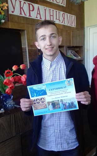 За підсумками конференції він отримав сертифікат учасника, а тези його доповіді будуть опубліковані у збірнику матеріалів І регіональної студентської конференції до сторіччя Першої Української революції