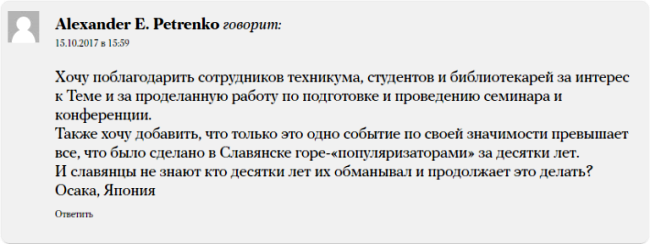 Остання конференція широко висвітлювалася у засобах масової інформації («Діловий Слов’янськ», «Освіта аграрна») та отримала високу оцінку від прямого нащадка Петренка: