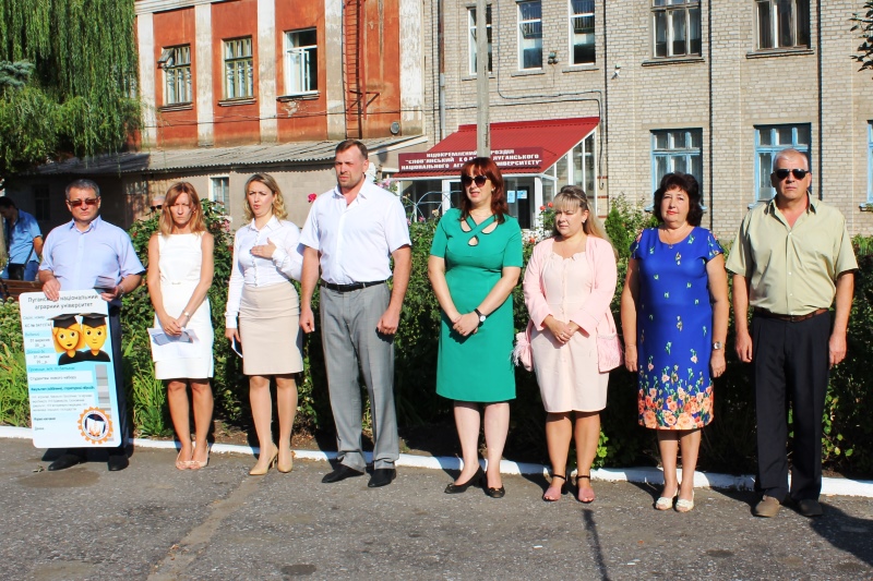 Новоприйнятих студентів Луганського національного аграрного університету привітали проректор з адміністративно-господарської роботи Любімов І.М., в.о. директора навчально-наукового інституту механізації сільського господарства Поляков А.М. і в.о. декана економічного факультету Васюренко Л.В., вручивши першокурсникам символічний студентський квиток