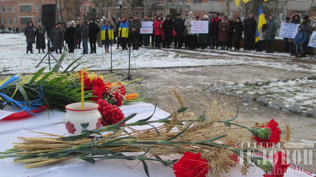 Мешканці міста, в тому числі викладачі Слов’янського аграрного технікуму, пройшли центральними вулицями міста з плакатами, що нагадували про ті трагічні події, коли українців винищували за їх національною ознакою. Під час ходи активісти розповідали мешканцям міста про голодомор у Слов’янську та Слов’янському районі і закликали долучитися до загальноукраїнської акції «Запали свічку».