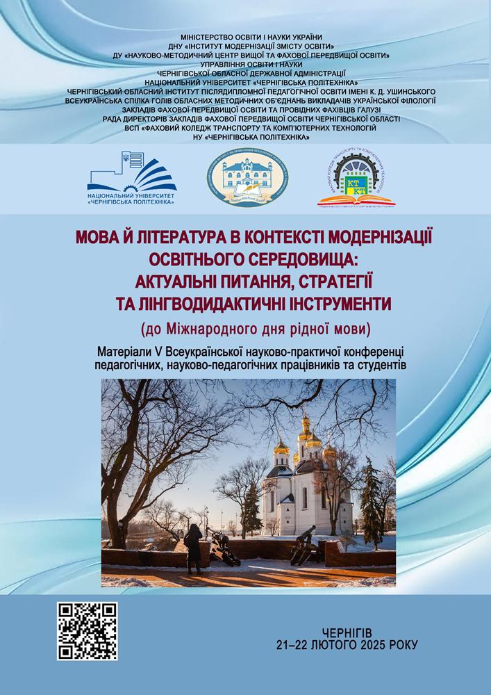 Чергігівський обласний інститут післядипломної педагогічної освіти ім. К.Д. Ушинського. V Всеукраїнська науково-практична конференція педагогічних, науково-педагогічних працівників та студентів «Мова й література в контексті модернізації освітнього середовища: актуальні питання, стратегії та лінгводидактичні інструменти» Стаття «Формування читацької компетентності студентів на заняттях зарубіжної літератури» (15 годин)
