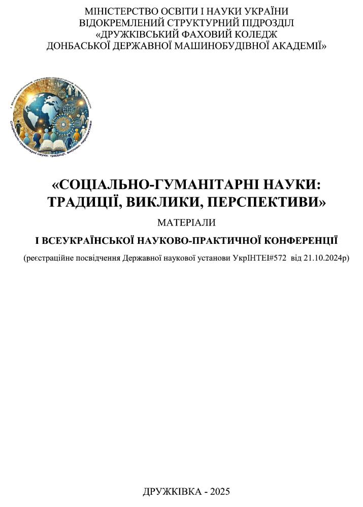ВСП «Дружківський фаховий коледж ДДМА». І Всеукраїнська науково-практична конференція «Соціально-гуманітарні науки: традиції, виклики, перспективи» Проєкт: «Збереження українських педагогічних традицій у формуванні національної ідентичності здобувачів освіти в умовах цифровізації» (8 годин)