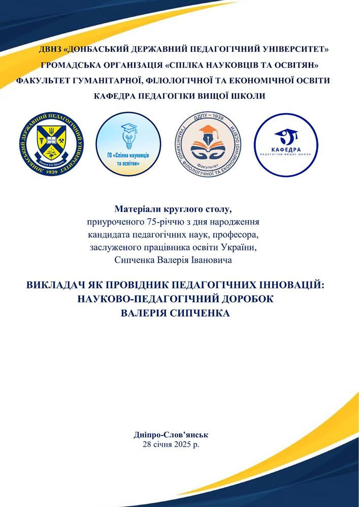 ДВНЗ «Донбаський державний педагогічний університет» Круглий стіл «Викладач як провідник педагогічних інновацій: науково-педагогічний доробок Валерія Сипченка». Стаття «Цифрові технології організації дистанційного навчання»