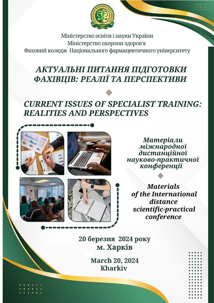 Фаховий коледж Національного фармацевтичного університету. Міжнародна дистанційна науково-практична конференція «Актуальні питання підготовки фахівців: реалії та перспективи» Стаття «Застосування методів проектного навчання для формування компетентностей в освітніх компонентах»