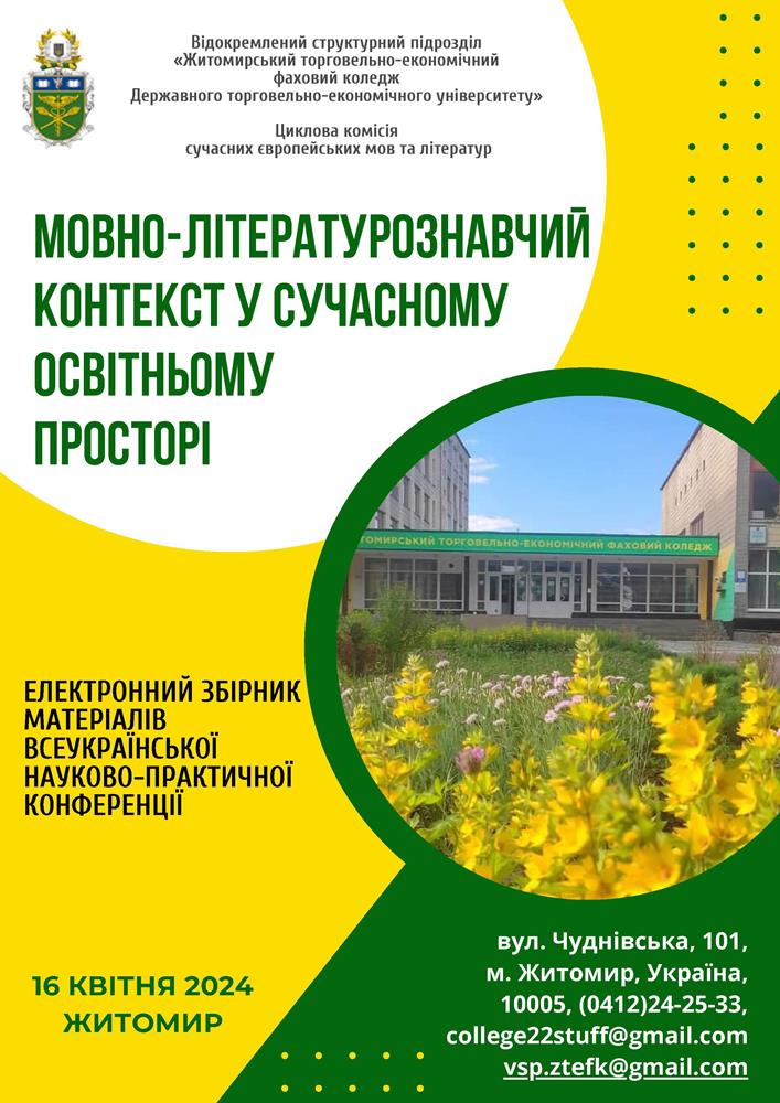 ВСП «Житомирський торговельно-економічний фаховий коледж Державного торговельно-економічного університету». Всеукраїнська науково-практична конференція «Мовно-літературознавчий контекст у сучасному освітньому просторі» Стаття «Англійська мова як інструмент розвитку комунікативного простору України». Студент Мураль Михайло