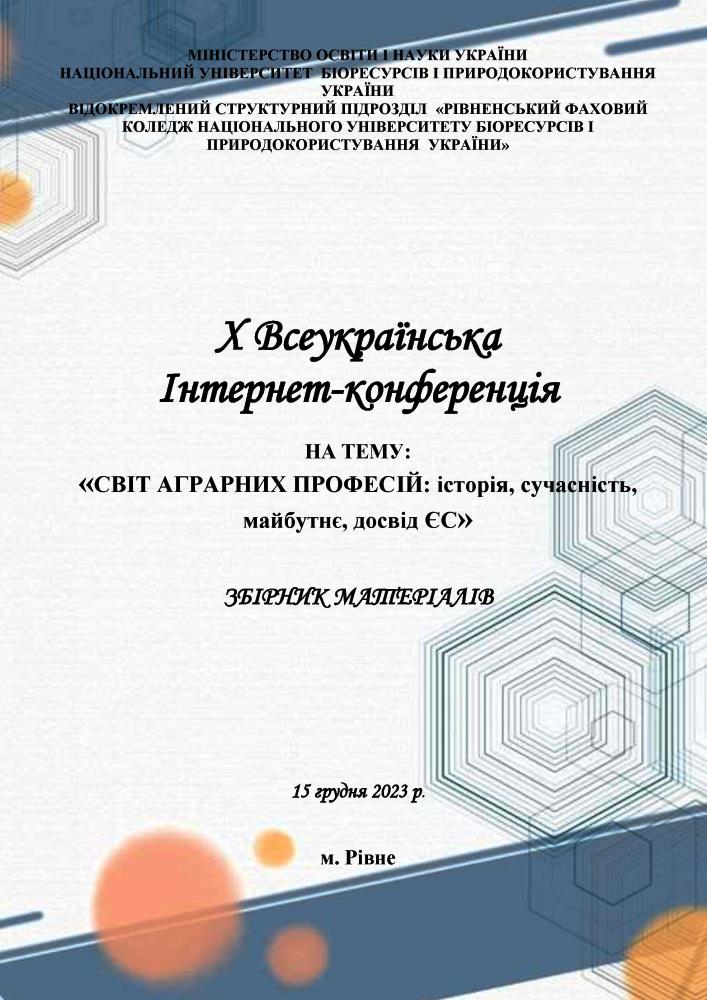 ВСП «Рівненський фаховий коледж НУБіП України». Х Всеукраїнська інтернет-конференція «Світ аграрних професій: історія, сучасність, майбутнє, досвід ЄС» Стаття «Розвиток грунтозахисних технологій в Україні»