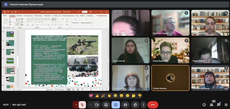 Особливу увагу було приділено темі «Українські фізики на допомогу армії». Нечкіна Поліна представила презентацію «Разом до перемоги», у якій розповіла про застосування наукових розробок у військовій сфері. Присутні переглянули відео «ТОП-10 зразків вітчизняної зброї на озброєнні ЗСУ», що викликало щирий інтерес і гордість за українських інженерів та науковців.