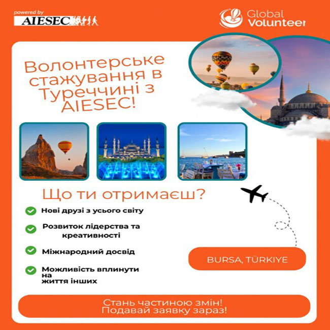Під час зустрічі здобувачі освіти познайомилися з діяльністю AIESEC та дізналися про можливості участі у міжнародних волонтерських програмах Global Volunteer, які відкривають студентам шлях до нових вражень, розвитку, подорожей та знайомств. AIESEC – це глобальна мережа молодіжного лідерства, що допомагає молодим людям здобувати практичний досвід у різних країнах світу, зокрема в Туреччині, Єгипті, Греції, Італії, Азербайджані та інших.