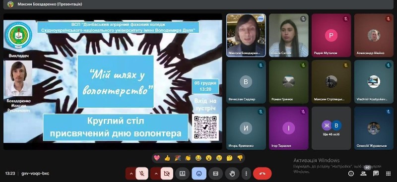 В умовах сьогодення, коли волонтерство в Україні стало невід’ємною частиною громадянської стійкості, особливо важливо формувати у молоді розуміння цінності допомоги іншим. 5 грудня з нагоди Міжнародного дня волонтера викладач фізичного виховання Бовздаренко Максим Русланович провів круглий стіл «Мій шлях у волонтерство», у якому взяли участь близько 70 осіб. Метою заходу було сприяння розвитку громадянської активності студентів, формування гуманістичних цінностей та мотивації до участі у волонтерських ініціативах.
