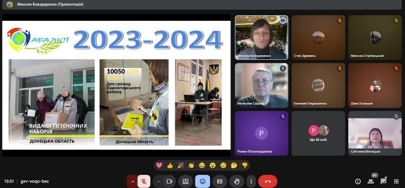 Особливу зацікавленість викликала практична частина зустрічі, присвячена обговоренню реальних волонтерських кейсів, викликів, труднощів і шляхів їх подолання. «Вільний мікрофон» відкрив Бовздаренко М.Р., який розповів про свою громадську діяльність, волонтерський досвід, активну участь у суспільному житті міста та регіону, а також про співпрацю з міськими, державними та міжнародними організаціями: Молодіжною радою міста Слов’янська, Донецькою обласною дитячо-юнацькою спортивною школою, комунальним закладом «Спорт для всіх» та громадською організацією «Аваліст». Він представив відеоматеріал про діяльність ГО «Аваліст» і детально розповів про свою участь у проєктах, спрямованих на надання гуманітарної допомоги жителям Донецької, Дніпропетровської та Харківської областей: видачу продуктових наборів і ваучерів, багатоцільову грошову допомогу, доставлення питної води, забезпечення громад будівельними матеріалами для відновлення пошкодженого майна, надання гігієнічних та непродовольчих наборів, а також виконання малогабаритних ремонтних робіт житла, пошкодженого внаслідок обстрілів.